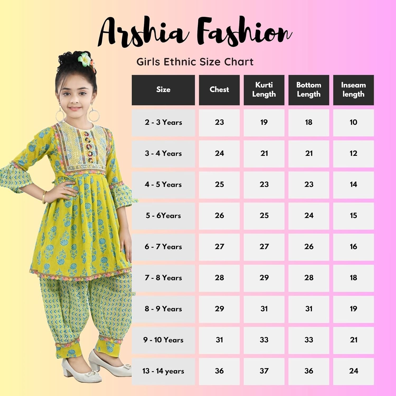 Arshia Fashions Girls Ethnic Wear Kurti and Dhoti Pant Set