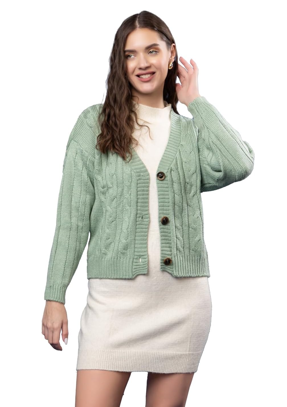 Kalt Women Sweater for Winter Woolen Acrylic Full Sleeves V-Neck Jacquard Design Cardigan Sweater for Women Winter Woollen Stylish