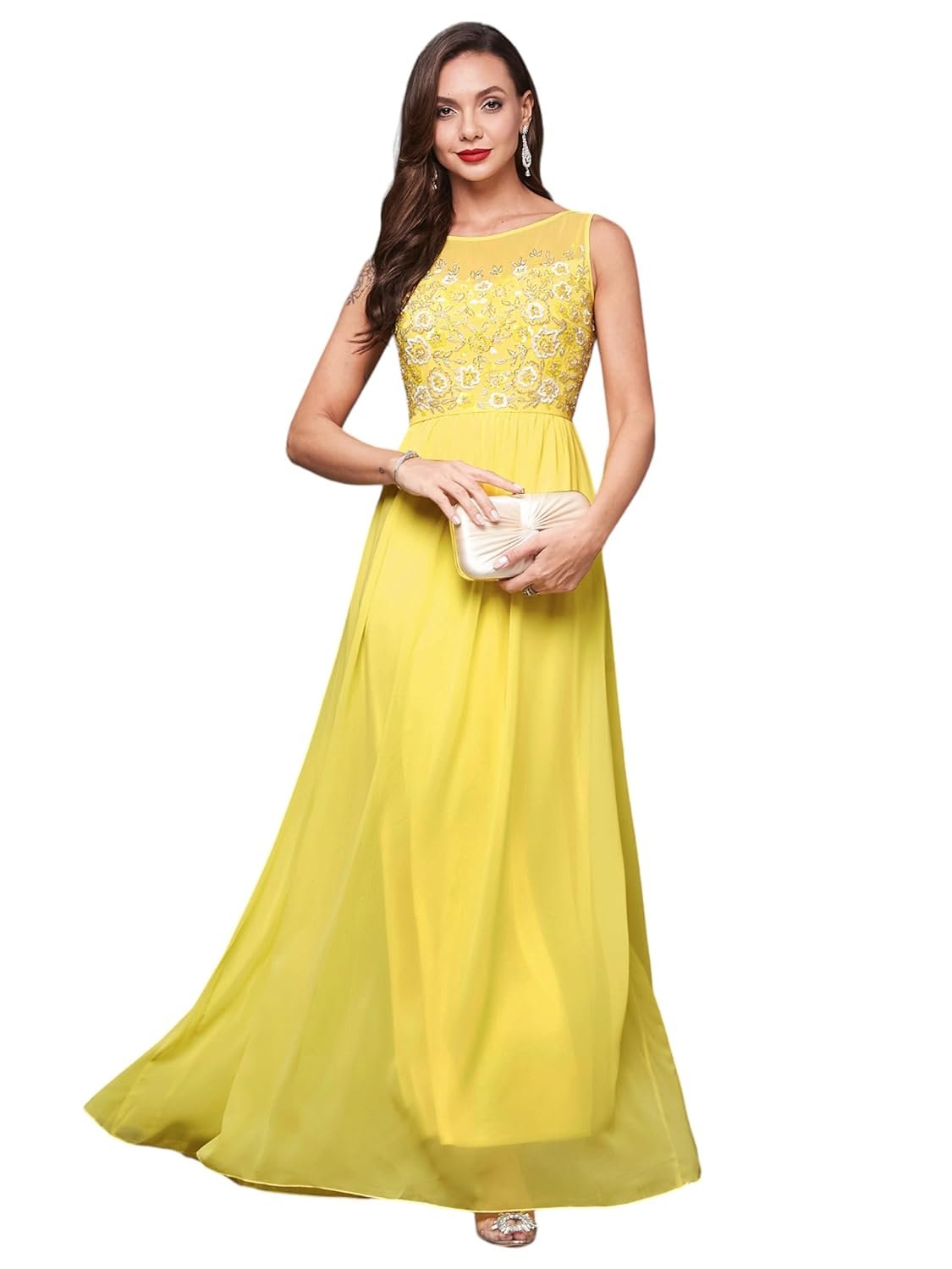 Miss Chase Women’s Dusty Pink Boat Neck Sleeveless Embellish…