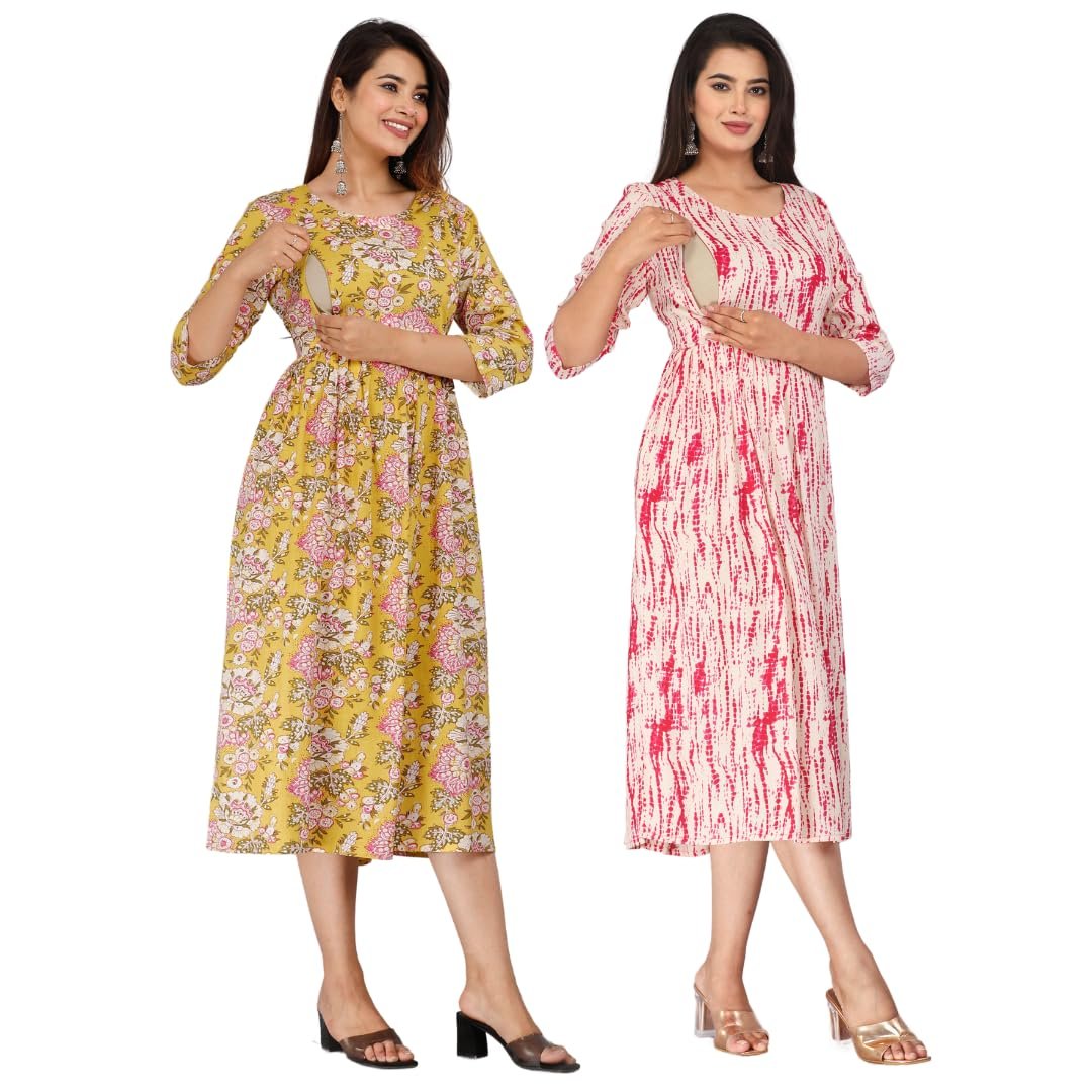 Pack of 2 Women Floral Print Viscose Rayon Maternity Gown (M…
