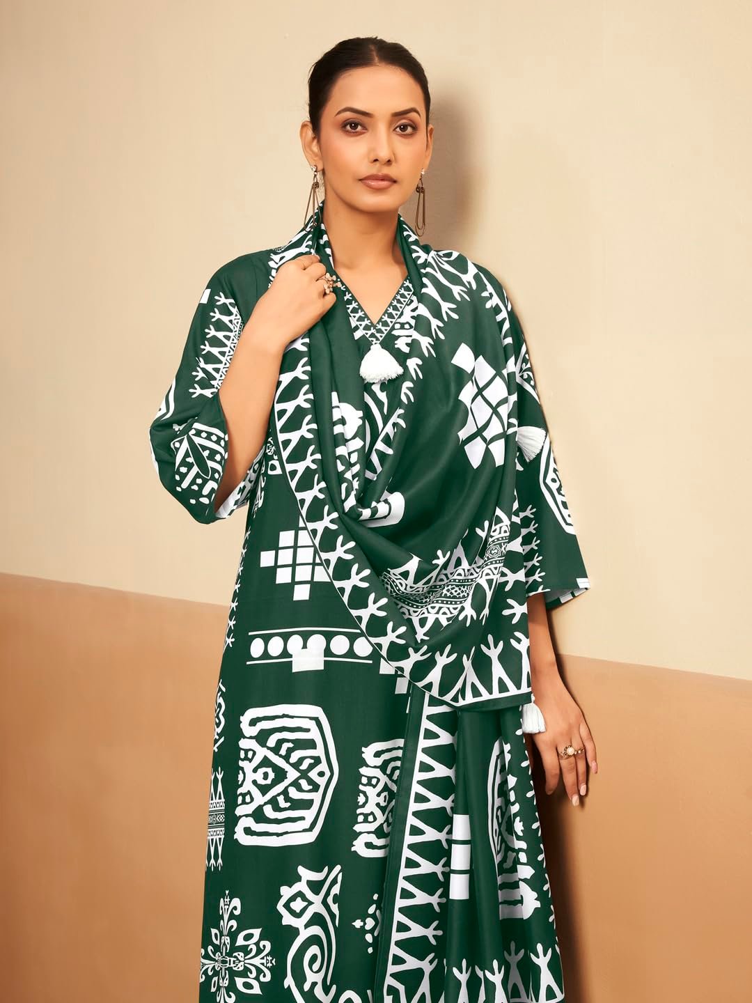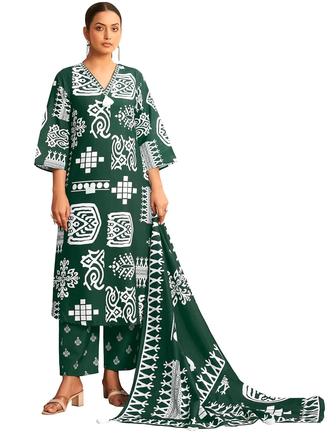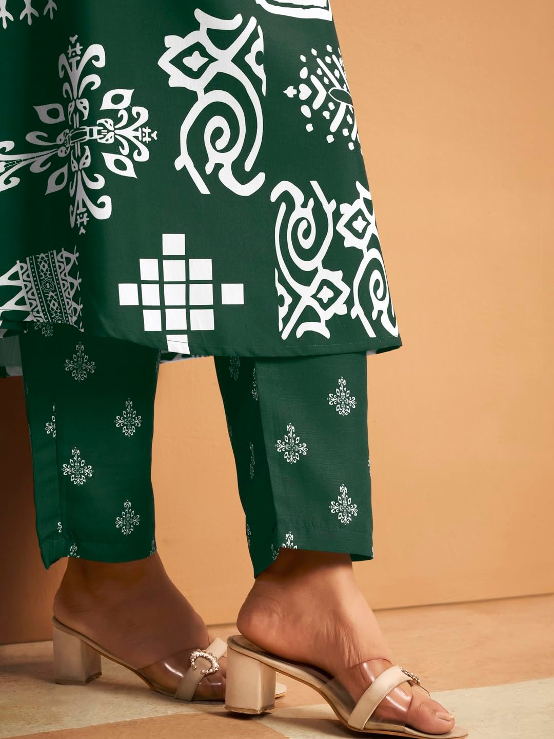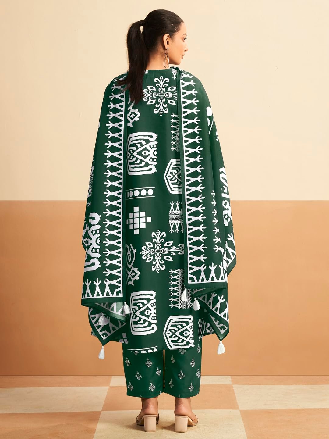 Pinkmint Women’s Printed Cotton Blend Kurta Pant with Silk D…
