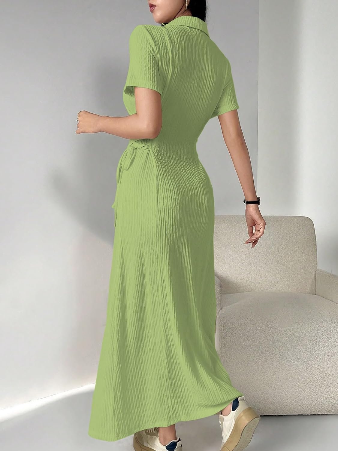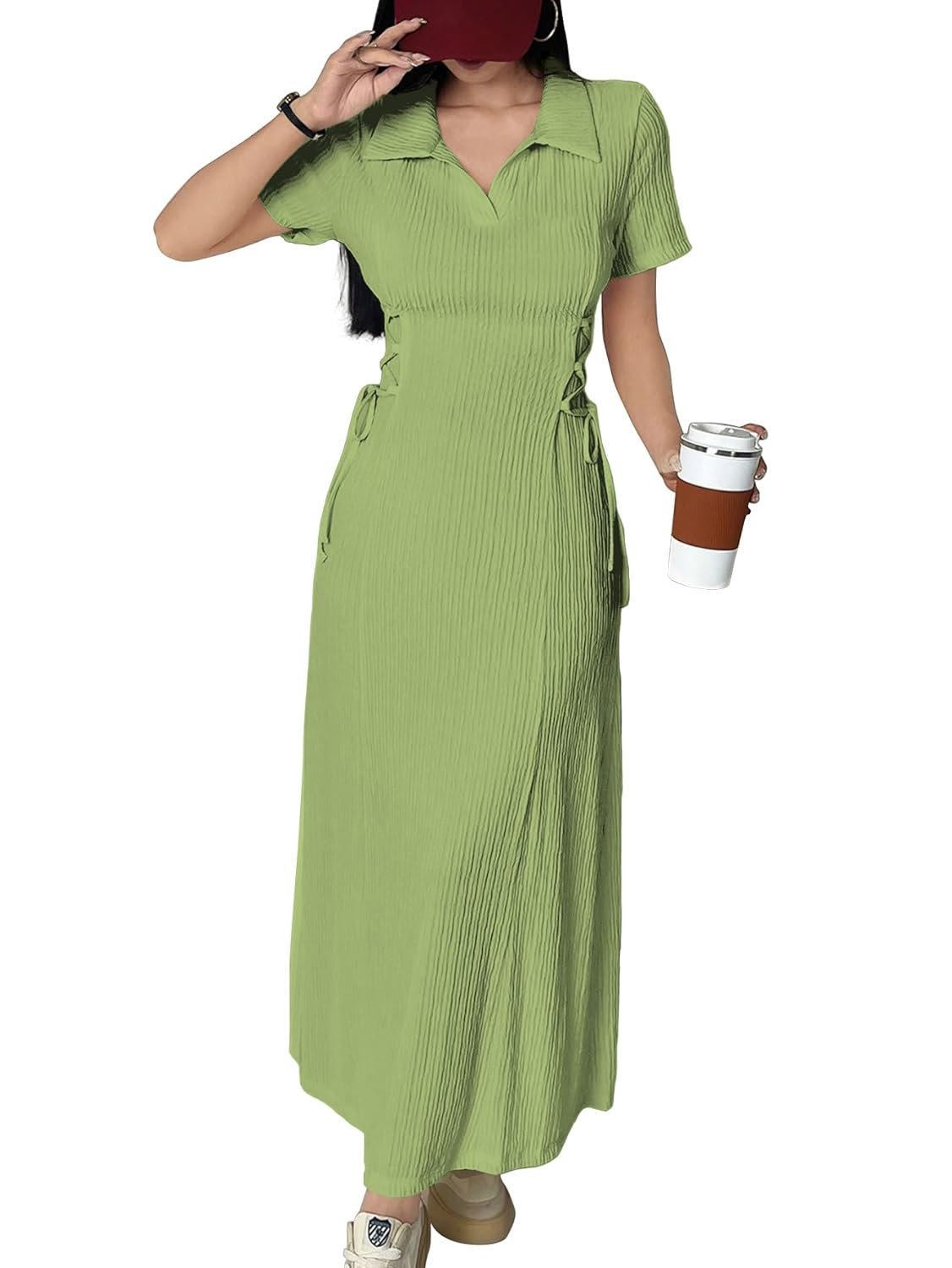 Shasmi Women’s Solid Color Applique Lace-Up Collared Short S…