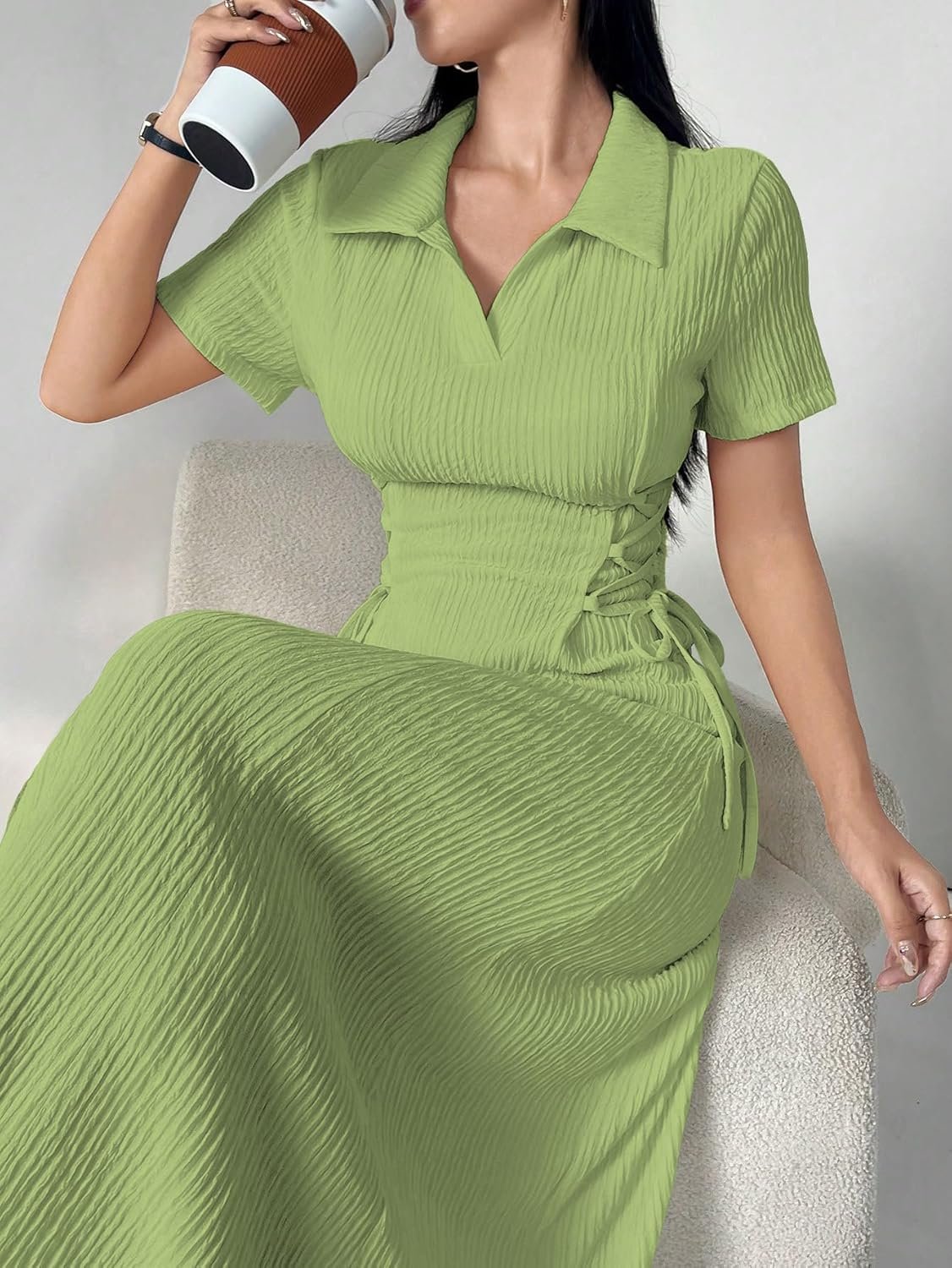 Be the first to review “Shasmi Women’s Solid Color Applique Lace-Up Collared Short S…”
