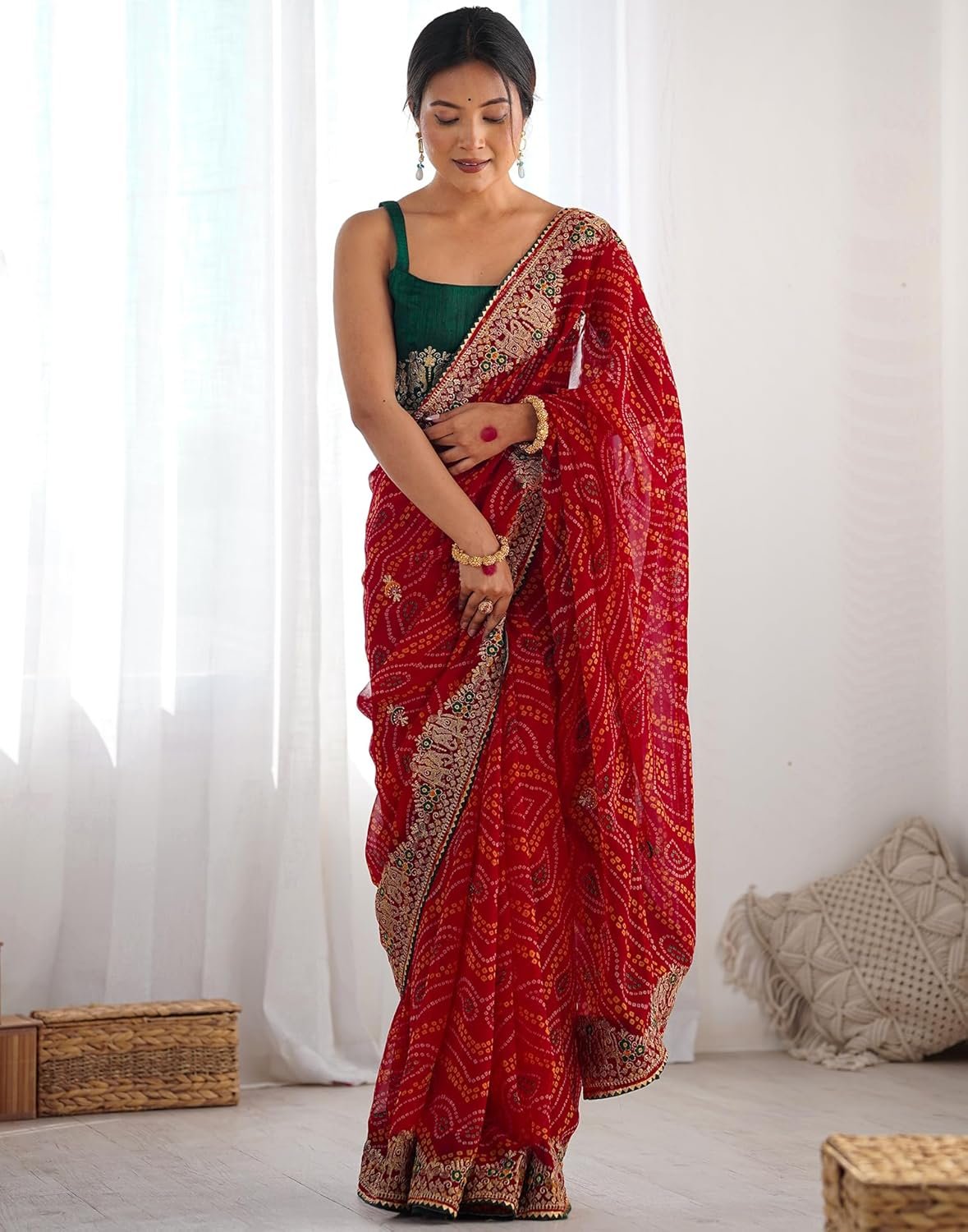 Be the first to review “SIRIL Women’s Georgette Bandhani Printed and Embroidery Sare…” Cancel reply