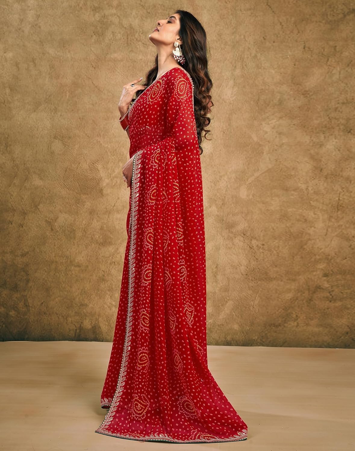 SIRIL Women’s Georgette Bandhani Printed Saree, Traditional …