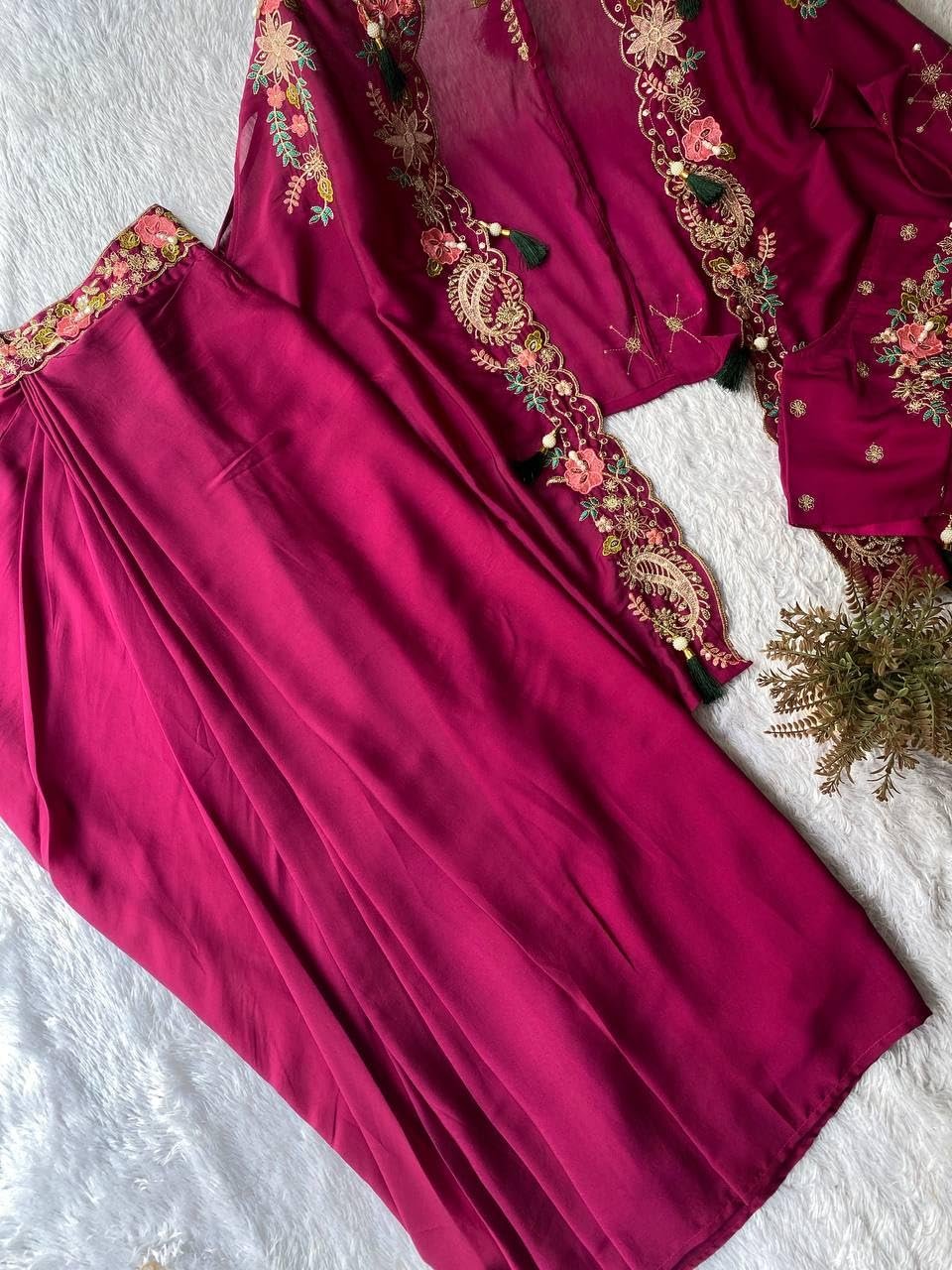 Be the first to review “Speciel Outfit Chinon silk Fabric Dhoti With Cording Work Bl…”