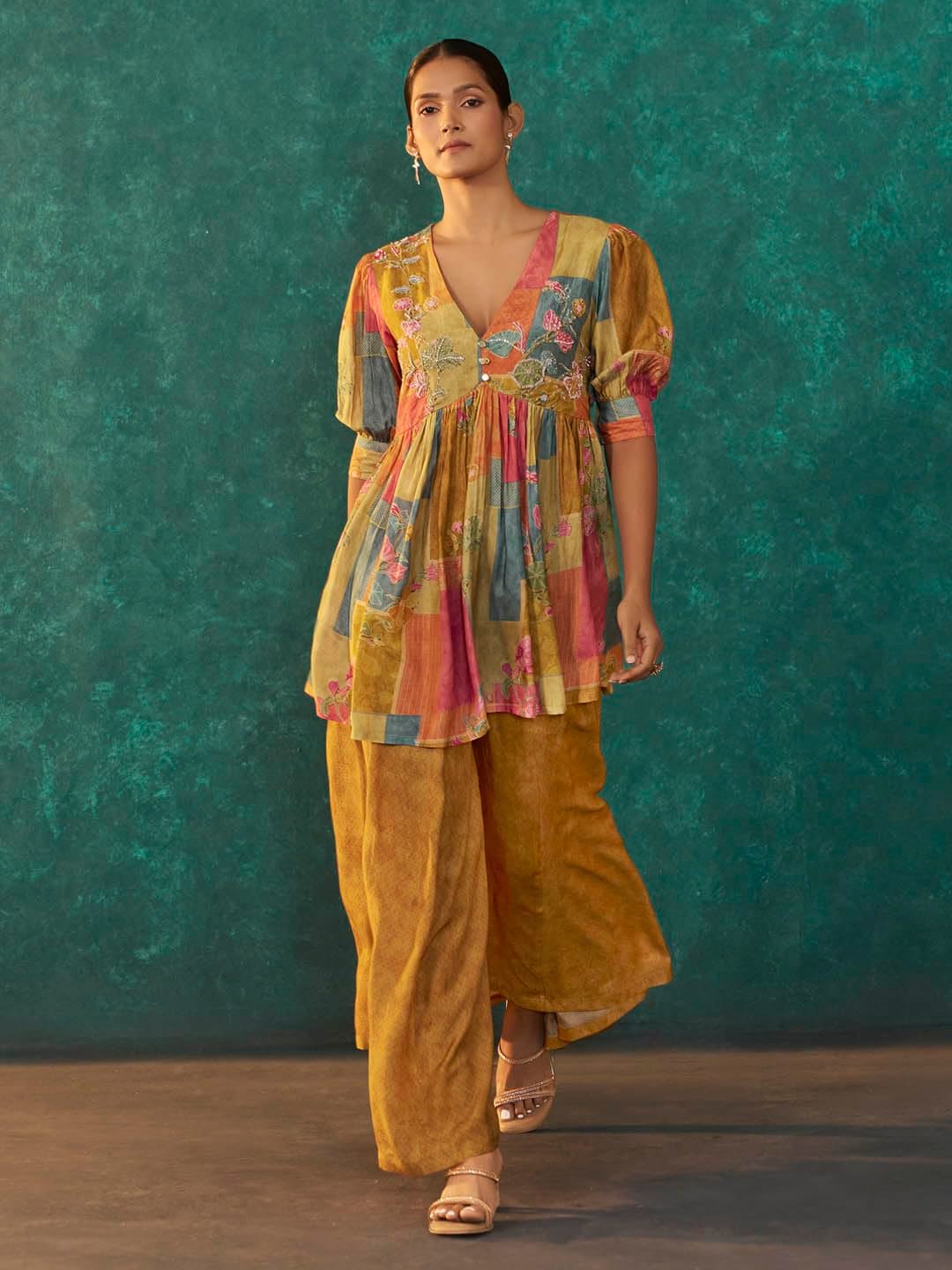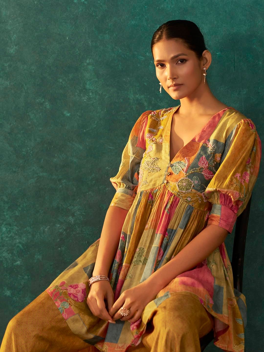 Be the first to review “Women’s Silk Embroidered Kurta with Flared Palazzo Ethnic Co…”